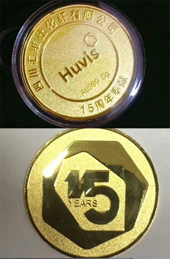 紧接着,大会的氛围进入了高潮,高总亲自为工龄满十五年的26位员工代表颁发了公司专门定制的金币,刻在金币上的“十五周年奉献”几个字,在纯金打造的金币上闪烁着耀眼的光芒。